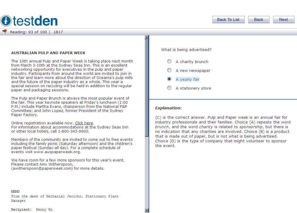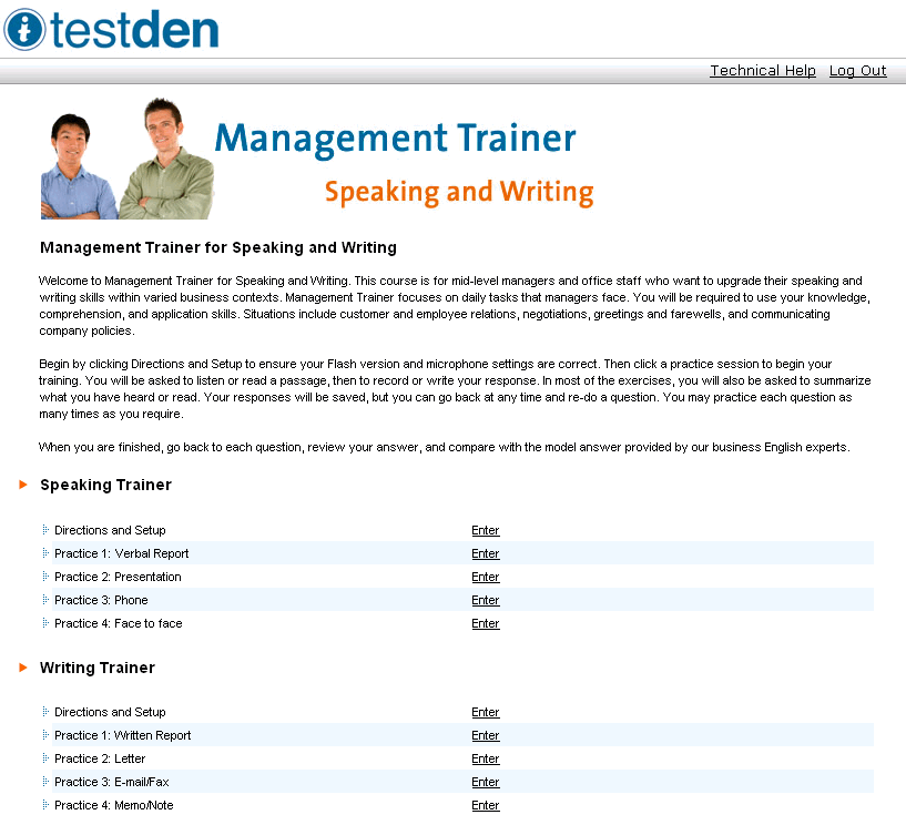 TestDEN's Online Course for the TOEIC® Test is just what you need to quickly and effectively prepare for the TOEIC test. Since 1997, tens of thousands of students have used TestDEN.com to prepare for the TOEIC test and raise their score.